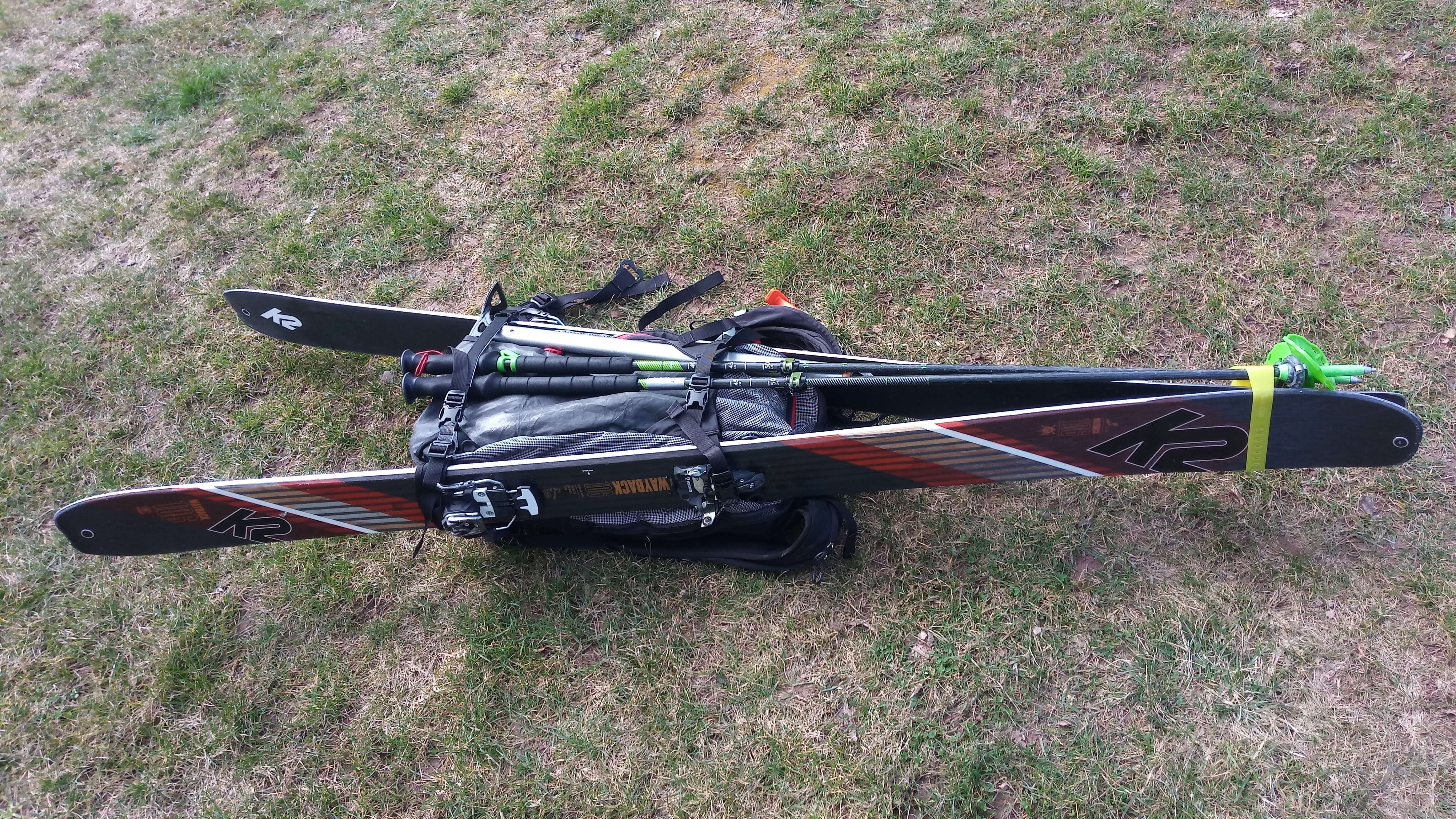 Fixace lyží, holí a cepínu na batoh Osprey Soelden PRO 32