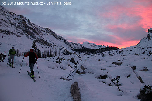 To není rudá záře nad Kladnem, ani hořící chata, jen západ slunce nad Dolomity