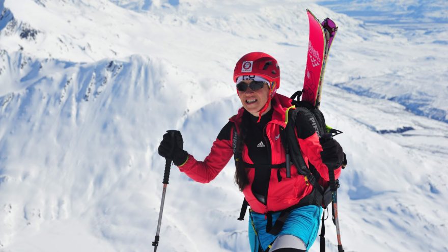 Pěší výstup s lyžemi připevněnými na batoh Pieps JetForce 2.0. 25 l, foto Jiří Kočara