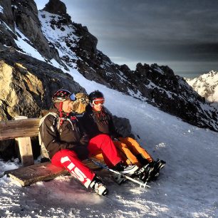 Posezení nad horní stanicí lanovky Karlesjochbahn