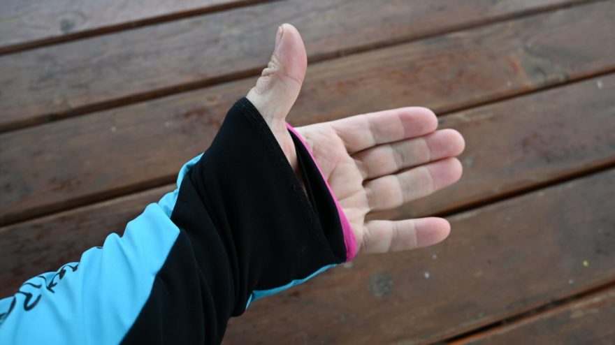 Detail zakončení rukávu u hybridní dámské bundy NORTHFINDER KRIZNA