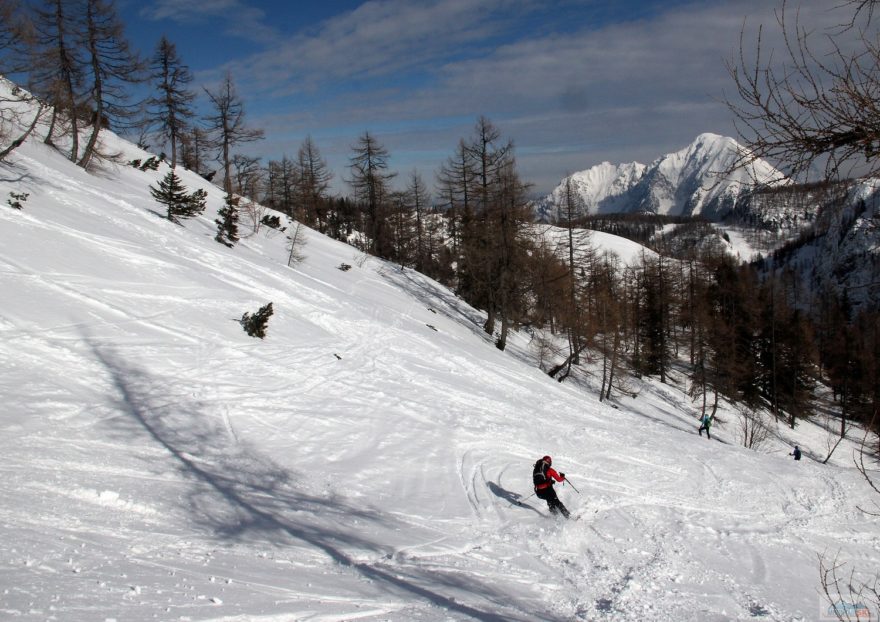 Sjezd z Rote Wandu na pláně u Wurzeralmu