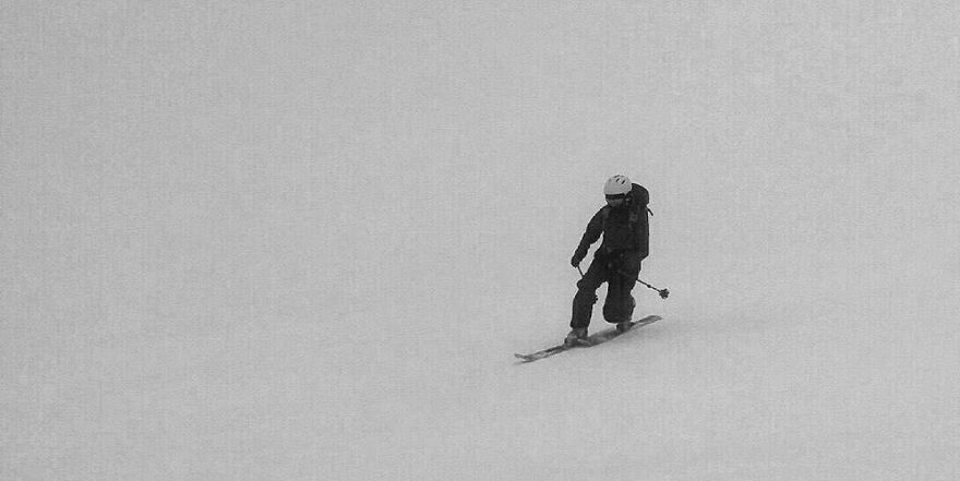 V mlze opatrně telemarkuji dolů kopcem
