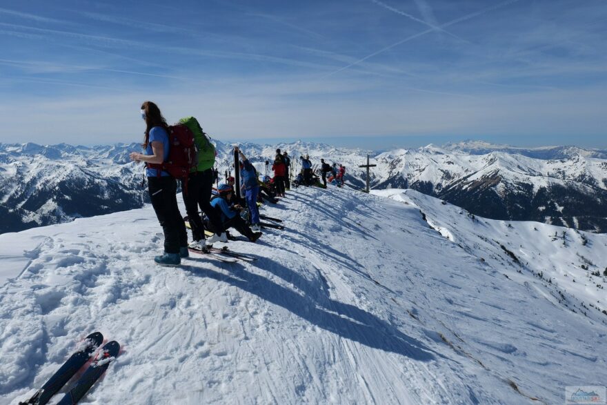Vrchol Schreinl s křížem těsně pod vrcholem