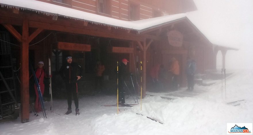Viditelnost je dobrá – hotel je vidět, vyrážíme na běžky