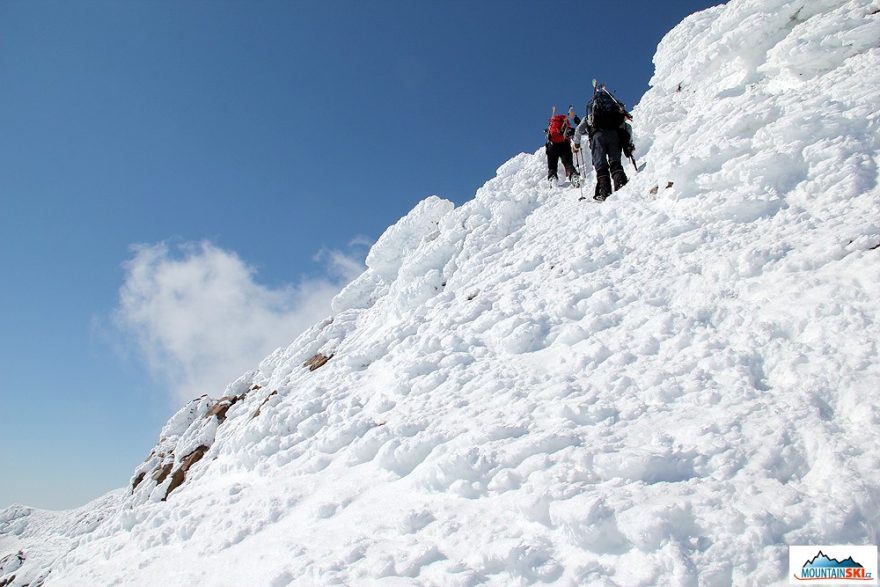 Při výstupu na Korjakskij je spousta pěkných míst jako toto ukloněné ledově-květákové pole