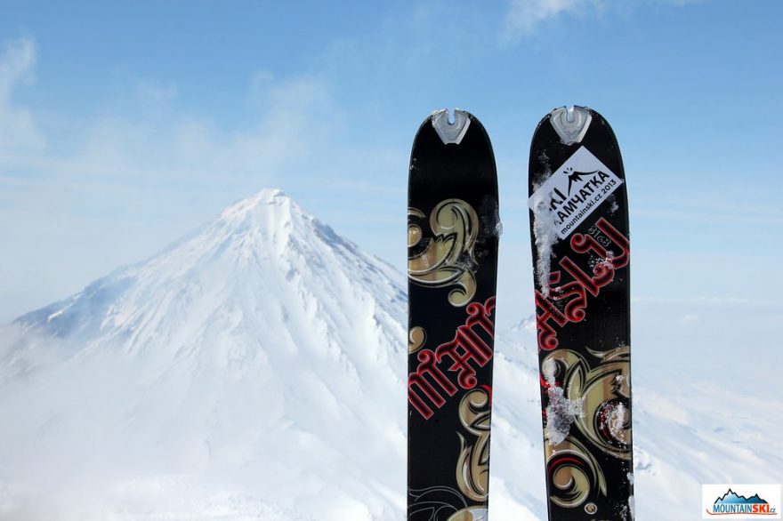 S lyžemi Dynafit Manaslu na vrcholu Avačinské, na pozadí Korjakskij, na němž jsme byli o den dříve