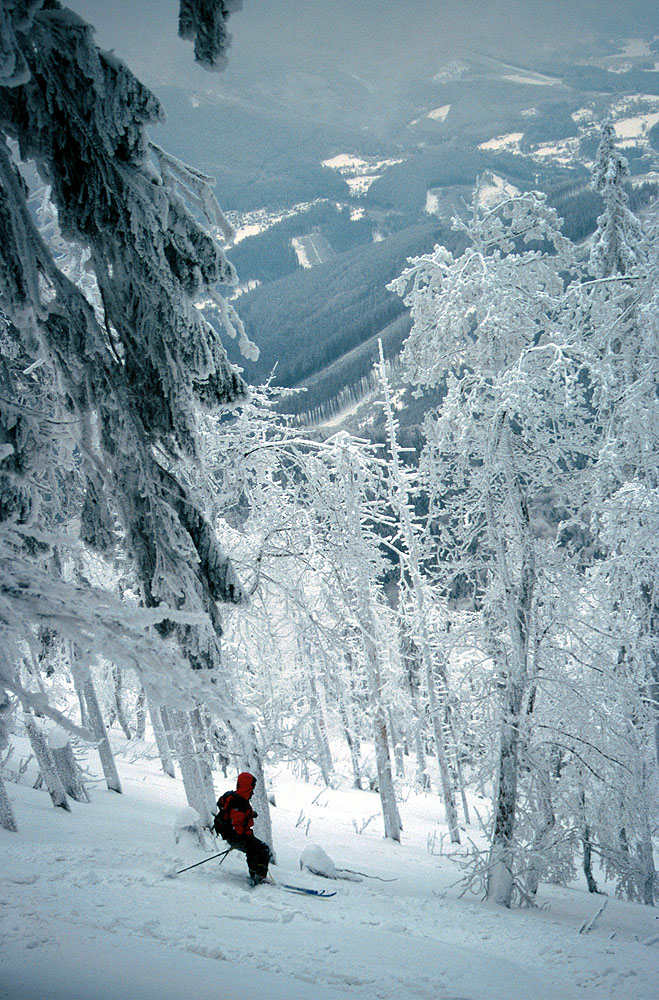 S lyžemi v klasickém beskydském lesu
