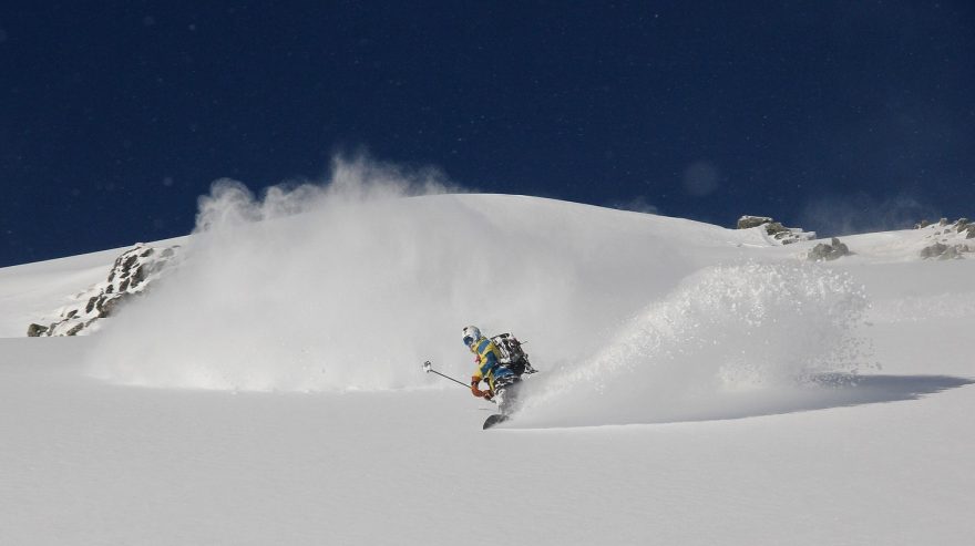 Splitboardové prášení v závěru Velké studené doliny ve Vysokých Tatrách