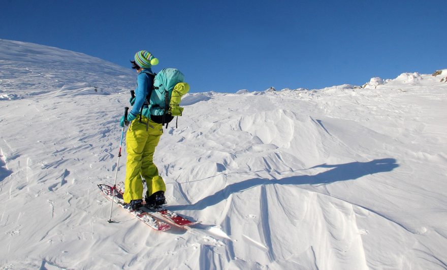 Tvrdý varhanovitý podklad není pro výstup na splitboardu ideální