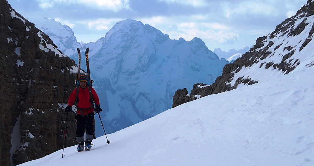 Galerie: Skialp v Dolomitech – kuloáry Canale Holzer a Joel