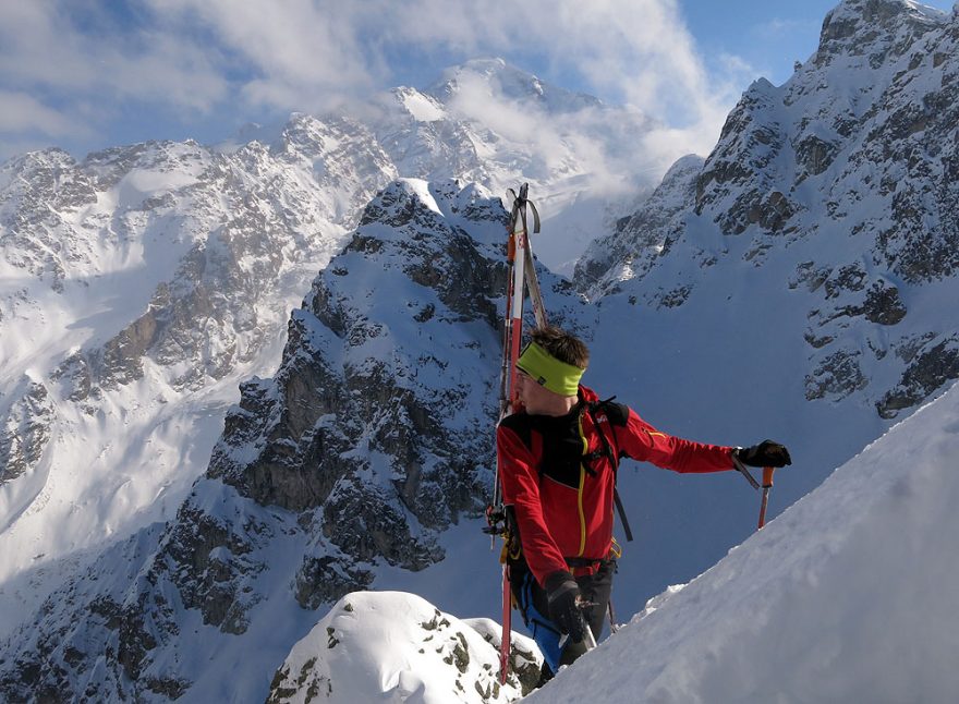 Impozantní výhledy během výstupu, lyže G3 FINDr 94 musely na batoh