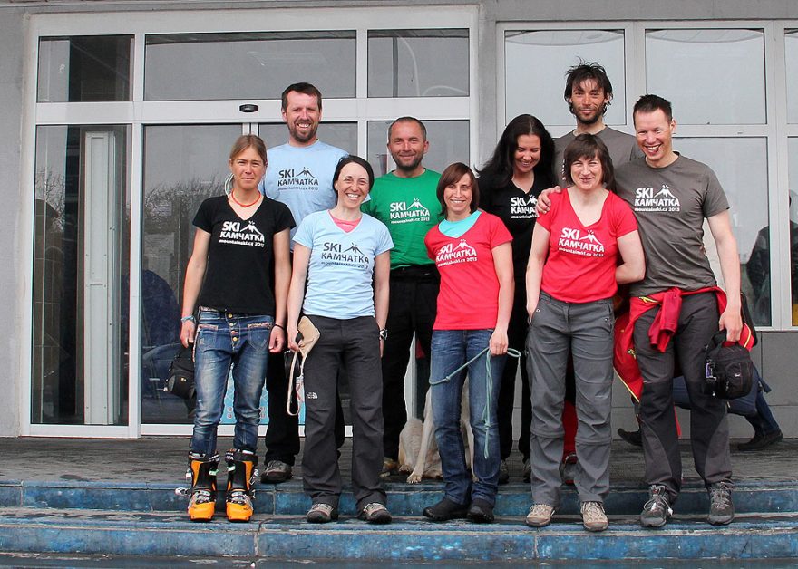 Účastníci výletu na Kamčatku: první řada zleva – Katka, Klára, Aljona, Mirka, Matúš, druhá řada zleva – Pažout, palič, Marta a Roman