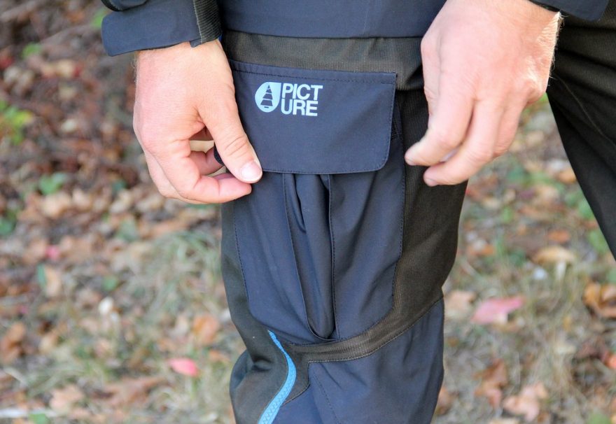 Přední velkoobjemová kapsa u kalhot Picture Visk je krytá dvěma suchými zipy