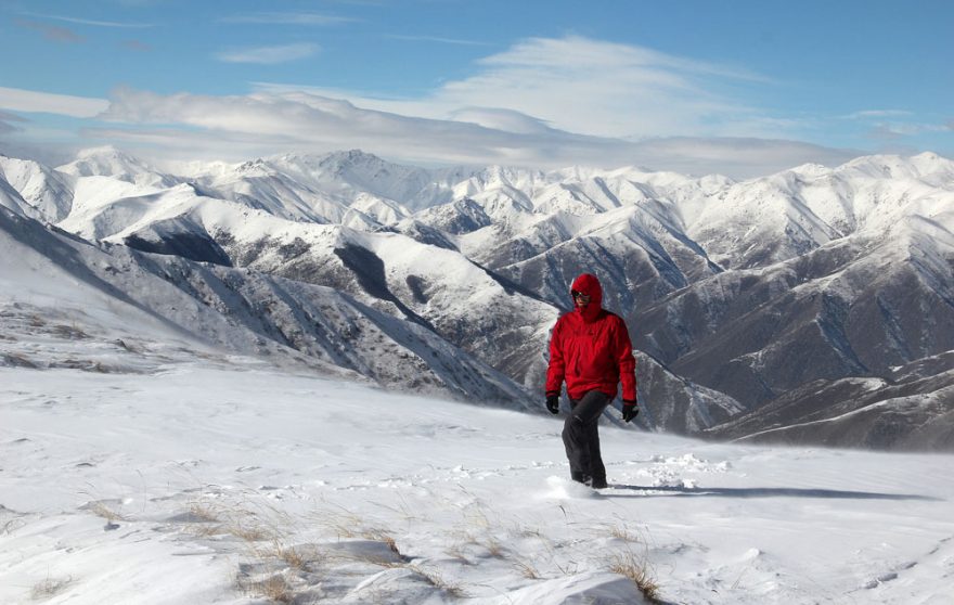 Výhled ze sedla na druhou stranu v silném větru – sněhová čára je dost vysoko