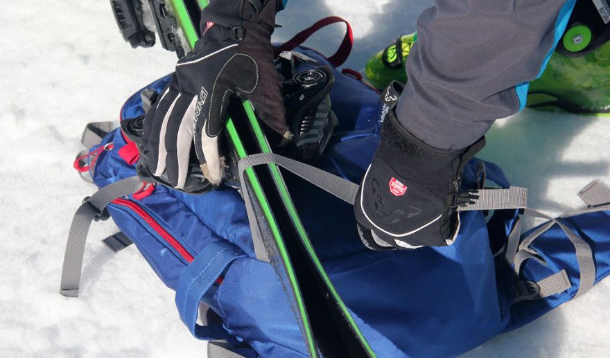 Díky popruhům lze lyže, snowboard nebo sněžnice k batohu snadno přidělat. Jan Pala