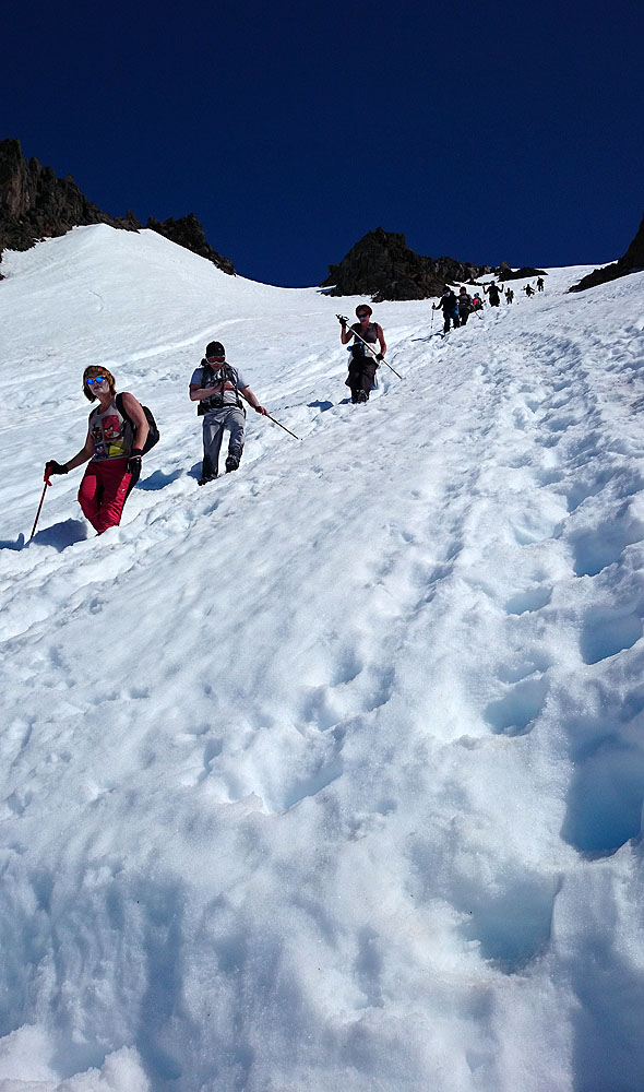 Jdeme Vraty nahoru, zatímco pěší turisté sjíždějí dolů