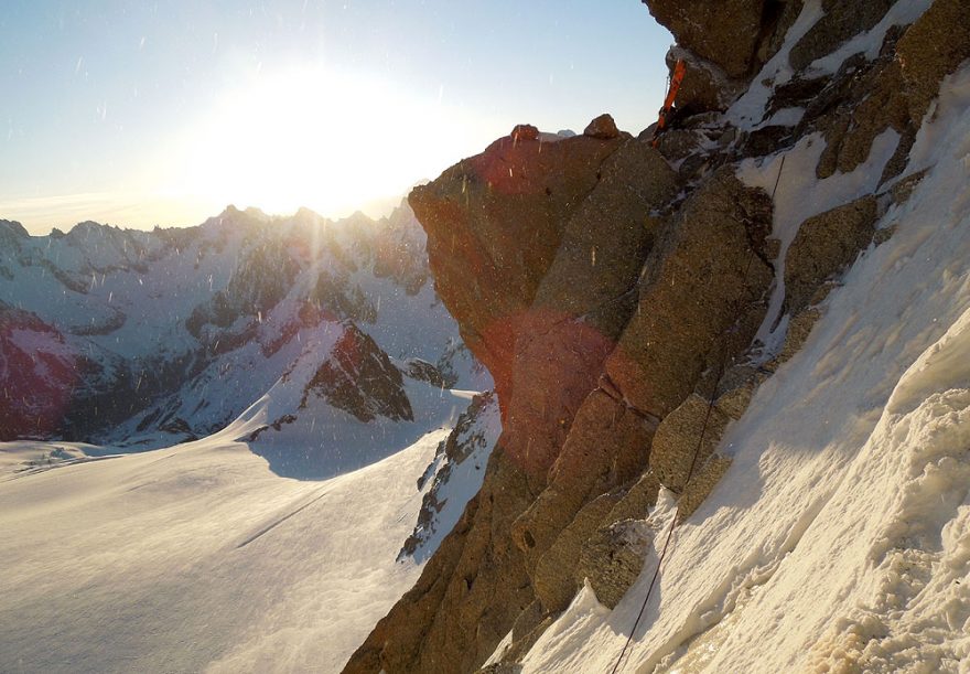 Skalní část výstupu přes Triangle na Mt. Blanc du Tacul