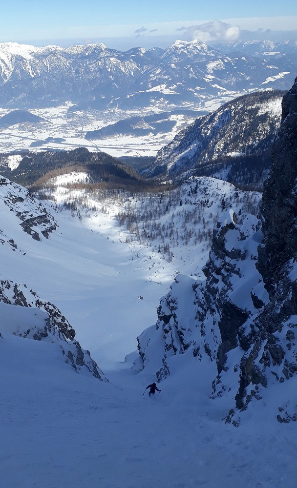 Galerie: Strmý sjezd žlabem Stofferkarrinne v Totes Gebirge