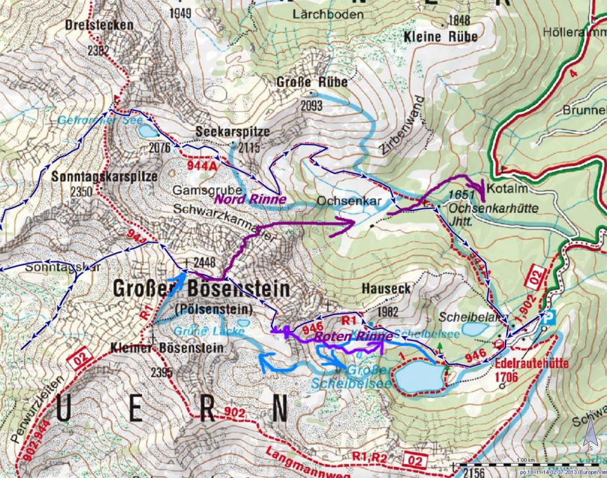 Trasa výstupu a sjezdu
