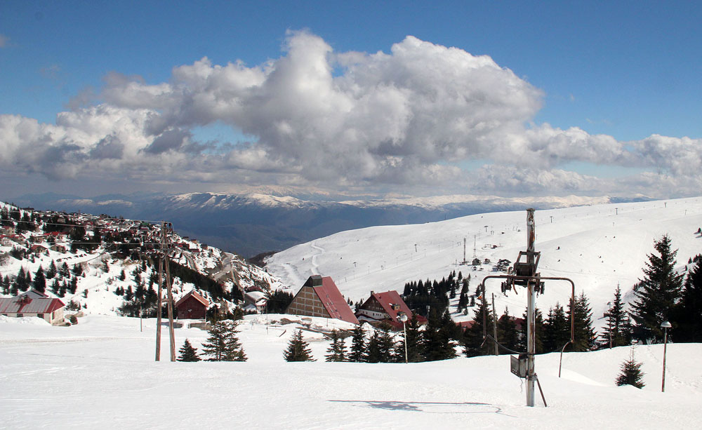 Z menšího nadhledu na lyžařské středisko Popova Šapka
