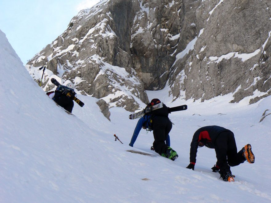 Příkře vzhůru žlabem nad „sjezdovkou“