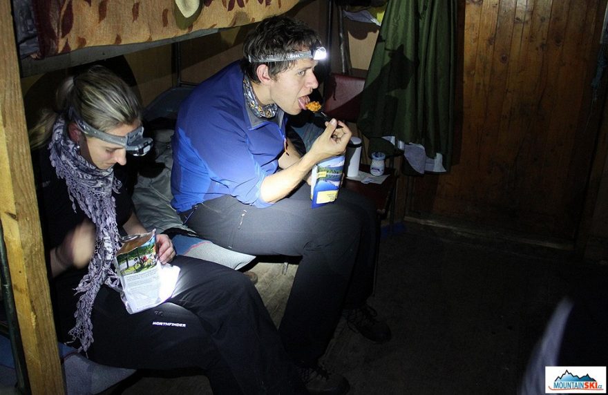 Po vysilujícím zkoušení různých čelovek přišly vhod jídla Mountain House a Travellunch
