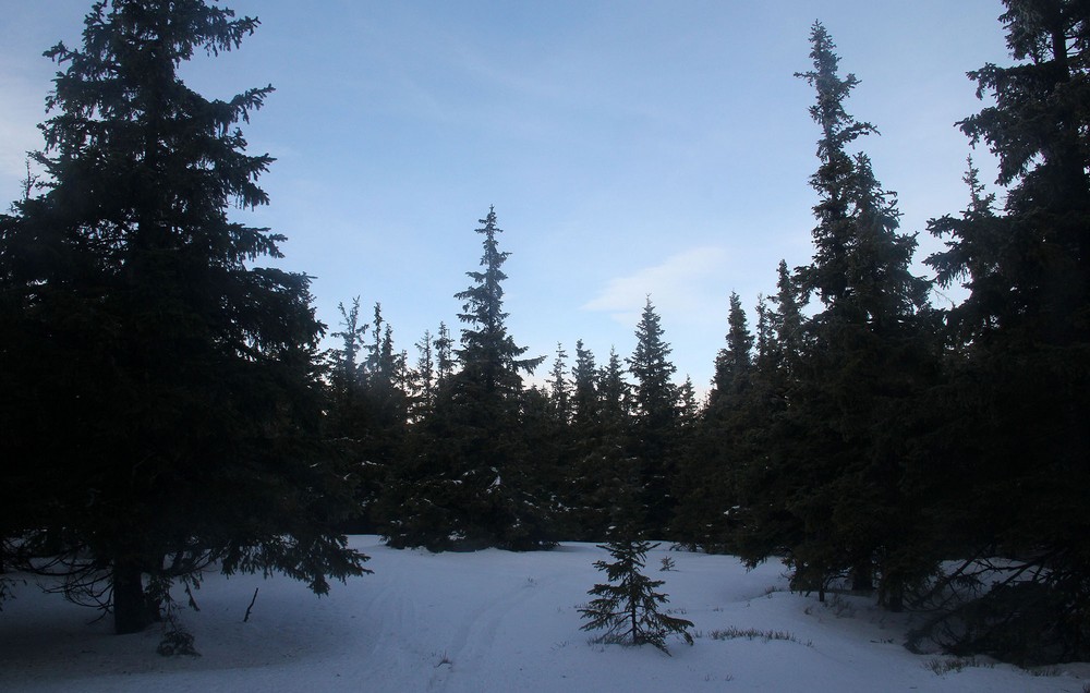 Galerie: Vrchol Temná (1263 m) v Jeseníkách – na skialpech lesem