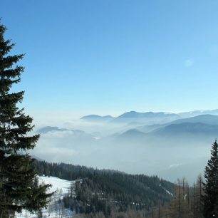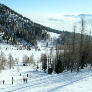 Galerie: Vyhlídkový lesní průsek na skialpech naproti chatě Wariegerlhaus
