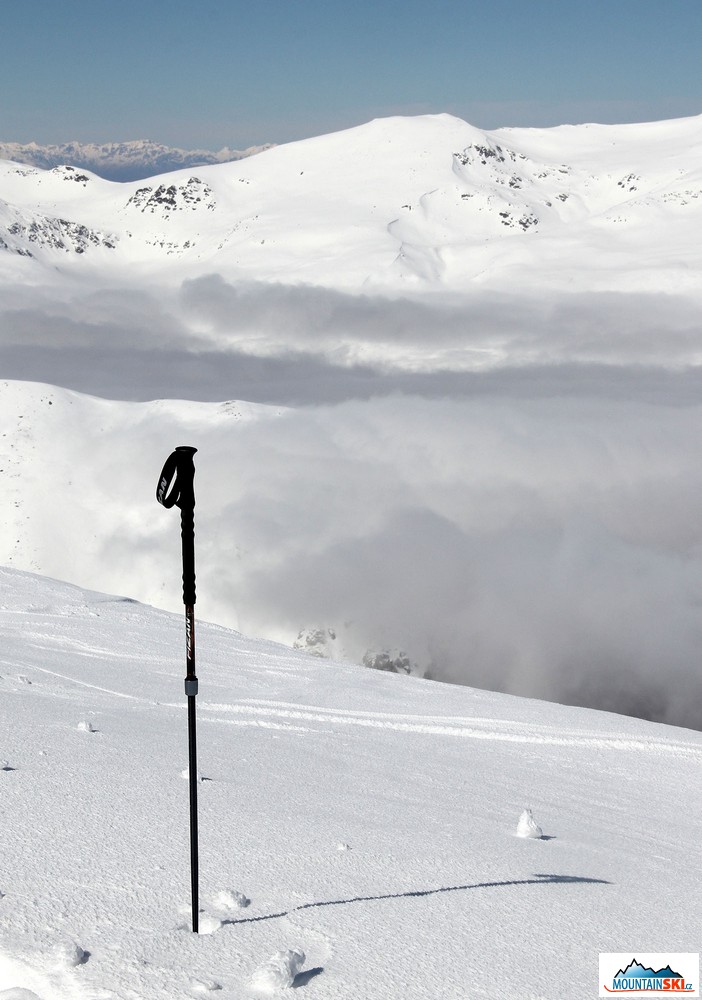Skialpinistické a trekové hole Fizan Broad Peak na hřebenu poblíž vrcholu Antena