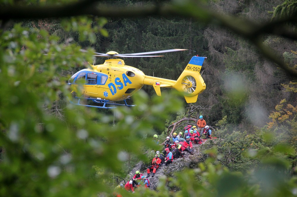 Vrtulník DSA těsně nad via ferratou Vodní brána