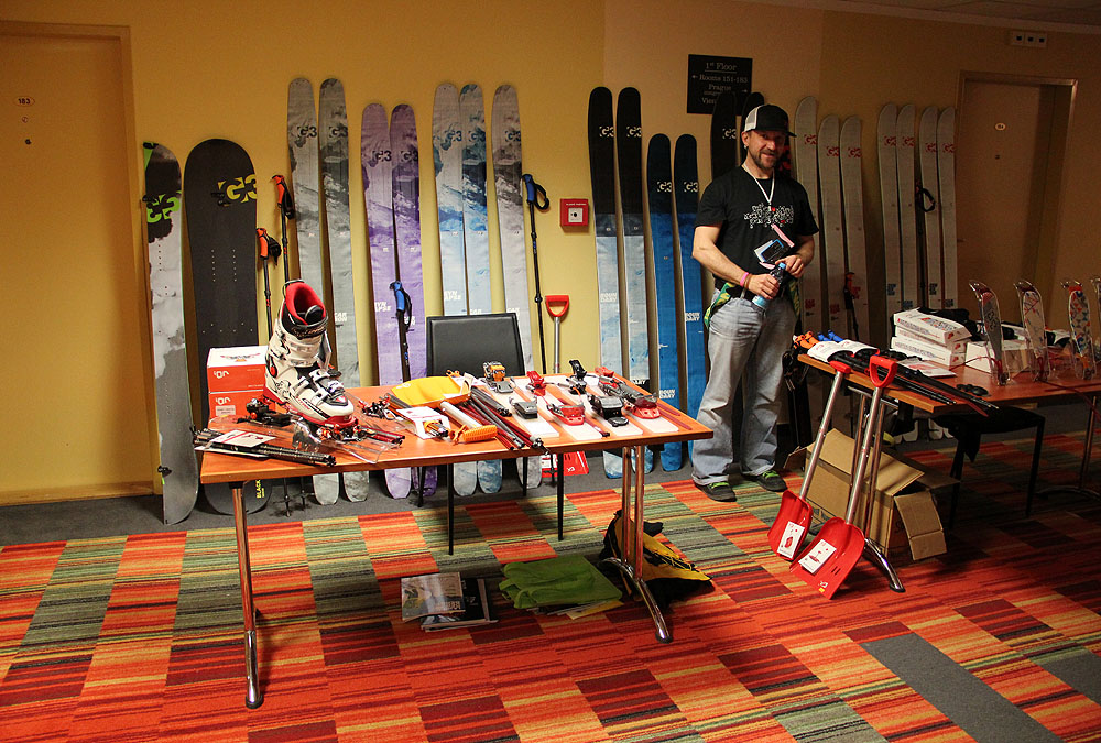 Stánek Boatparku se vším od telemarku přes skialp a freeride, až po splitboard, a to včetně sond a lopat