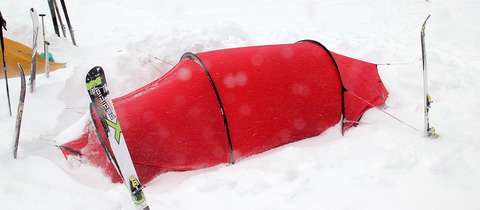 Při výletu Ski Kamčatka 2013 – co a jak se dělo při skialpinistickém výletu jsme měli od Hanibal.cz povedený dvoumístný stan Hilleberg Nallo 2 GT. Stan jsme vyzkoušeli důkladně v zimních podmínkách při silném větru doprovázeném vodorovným sněžením.