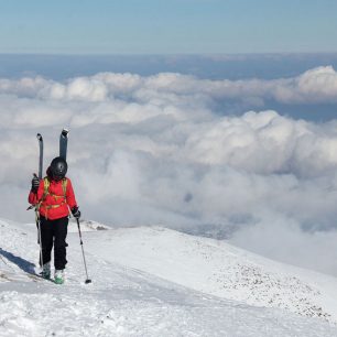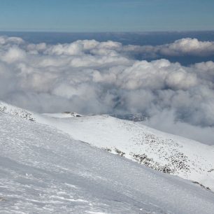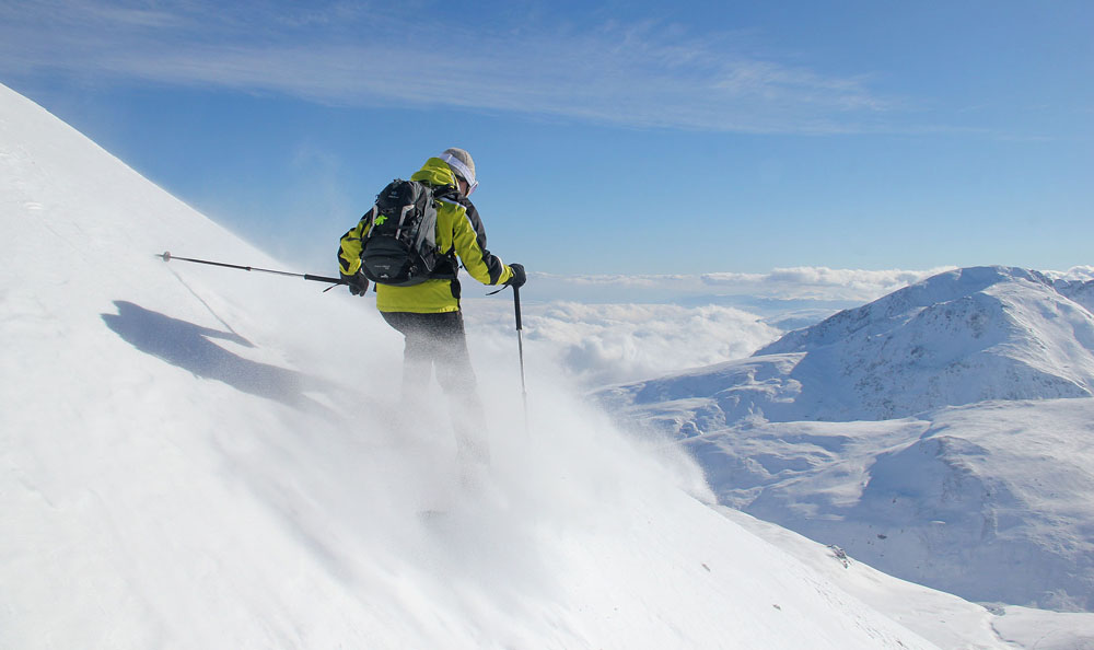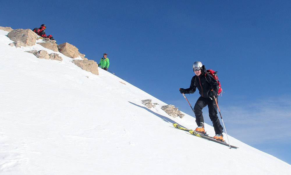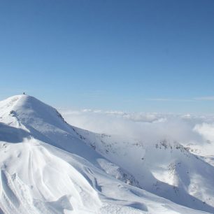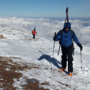 Od konečné stanice sedačkové lanovky traverzujeme vlevo do sedla v hlavním hřebenu. Z tohoto sedla už je krásně v dáli vidět Titov vrv a velká část hřebenovky, která nás čeká. Prvním výrzanějším vrcholem je Ceripasina (2531 m), nebo-li Antena (podle zbytků staveb na vrcholu). Z vyhlídkového vrcholu Ceripasina pokračujeme malým sjezdem na tuleních pásech ke krátkému výstupu na další vrchol (2551 m).