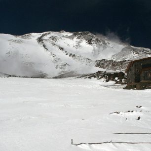 Dojezd k chatě, pod ní je původní tunelový bivak
