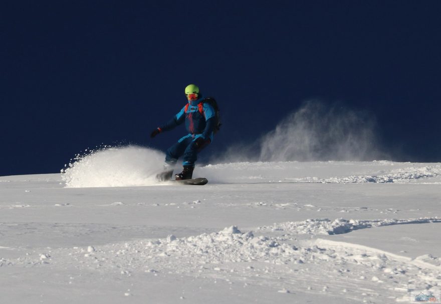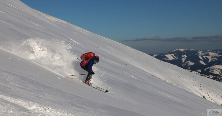 První část sjezdu z Ďumbieru je vyhlídková. Sjíždíme v traverzu podél výstupové stopy a následně ssi zvolíme vpravo nebo vlevo od ní sjezd směrem k chatě M.R. Štefánika. Jeden se po širokém svahu menšího sklonu.