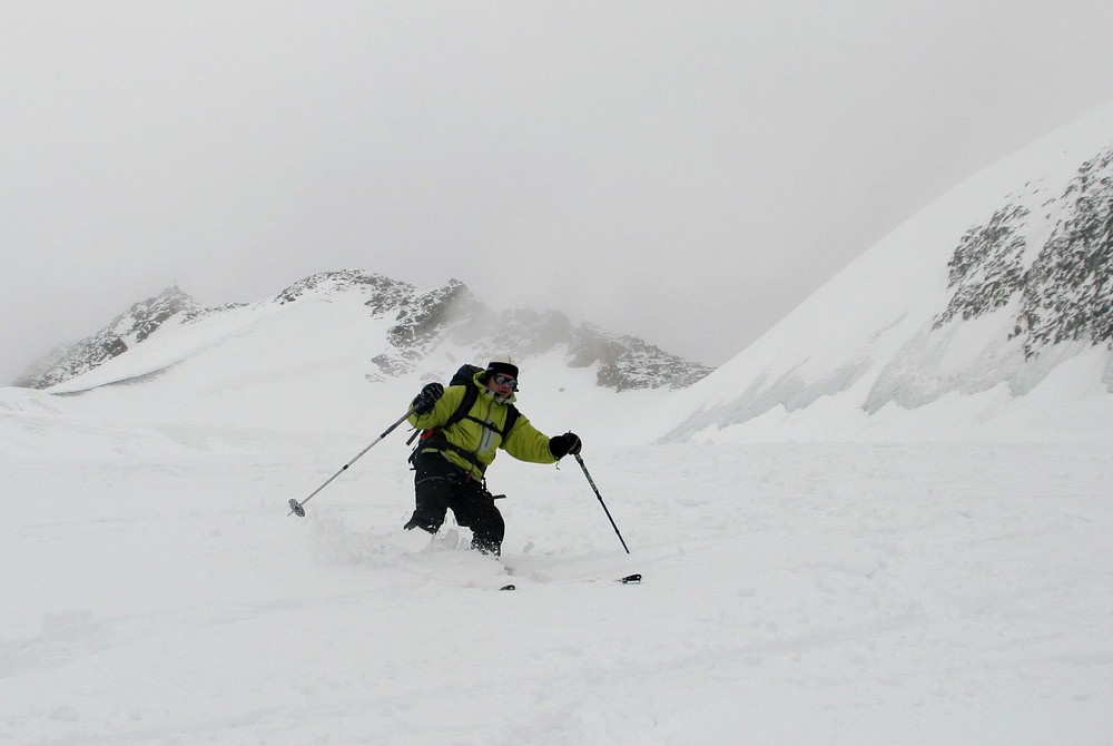 parkoviště Vent (1890 m) – Nidertal – Martin Busch Hütte (2501 m) – ledovec Marzellferner – Hinterez Schwärze (3628 m) – sjezd po ledovci Z a S – Martin Busch Hütte – Vent