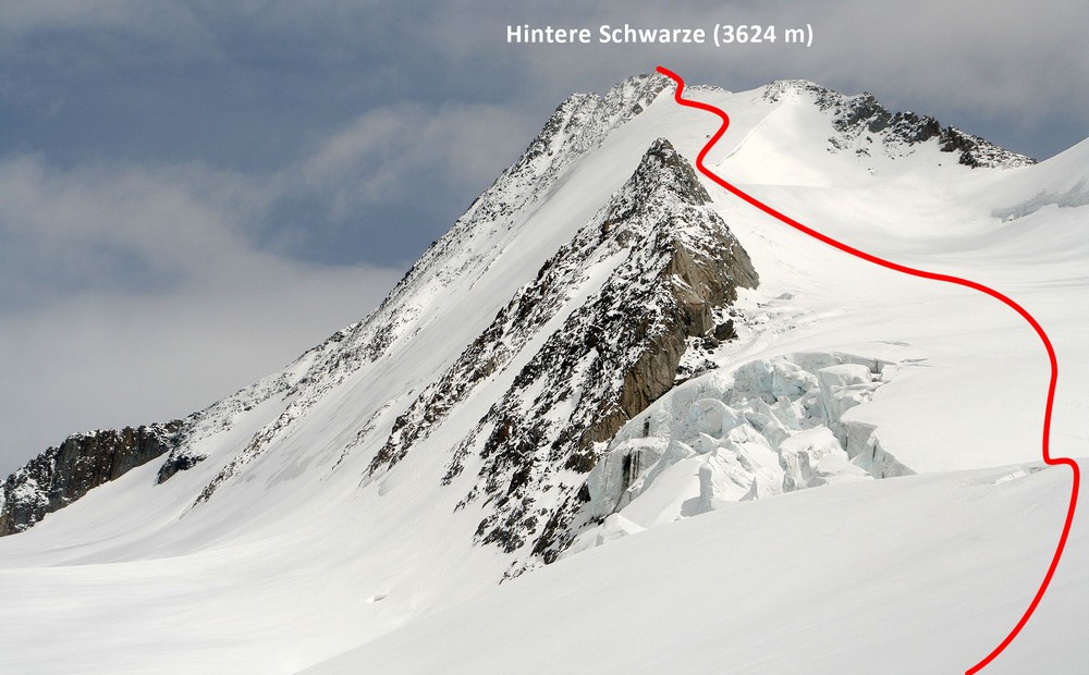 Klasická výstupová a sjezdová trasa z Hintere Schwärze