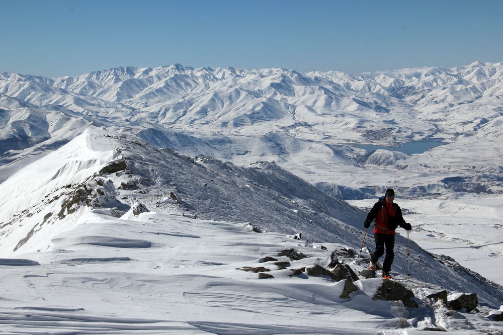 Po dostatečném vynadívání se za hranice do Náhorního Karabachu se stáčíme na severozápad. Při přesunu po hlavním hřebenu k vrcholu jsou po celou dobu k dispozici panoramatické kruhové výhledy, přičemž severovýchodním směrem jsou k vidění také jezero Sev. Za další menší vyvýšeninou se hřeben stáčí přímo na sever k hlavnímu vrcholu Ishkhanasaru.