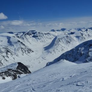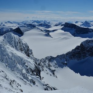 Půlhodina je vyhrazena pro krátký odpočinek, kousek margotky a můj nejoblíbenější foťák Nikon. Pak se připojuji ke skupince studentů, kteří se chystají sjíždět zpátky k chatě Spiterstulen. Většina z nich má těžké široké lyže, což je na tvrdém a větrem ubitém sněhu velká výhoda. Ovšem klučina vedle si to šine na běžkách. Na černočerné sjezdovce má specifický styl – jede vlevo, řízeně padá, v sedě přetočí lyže a jede vpravo. Padá, přetočí lyže, jede vlevo. Smějeme se, vtipkujeme na téma jeho běžek a cesta dolů nám příjemně utíká. Už jsme skoro dole a přichází největší padák. Loučím se a pokračuji dál směrem do údolí Visdalen. Je to sice trochu zajížďka, ale bývají tady nádherně vysněžené žlaby s mírným sklonem. Dnes jsou zledovatělé. Moje tělo mele z posledního. Návrat je bolavý, ovšem šťastný.