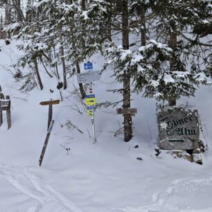 Průchod skalní soutěskou se třemi krátkými tunely vysekanými ve skále stoupáme po silnici nad potokem Klammbach až do první zatáčky o sto osmdesát stupňů. V zatáčce odbočujeme na vyšlapanou skialpinistickou stopu, která ve svahu kopíruje potok. Místy se objevují povedené výhledy, ale větší část zatím vede lesem. Výše ve dvou strmějších traverzech nastoupáme na cestu, z níž se otevírají lepší výhledy.