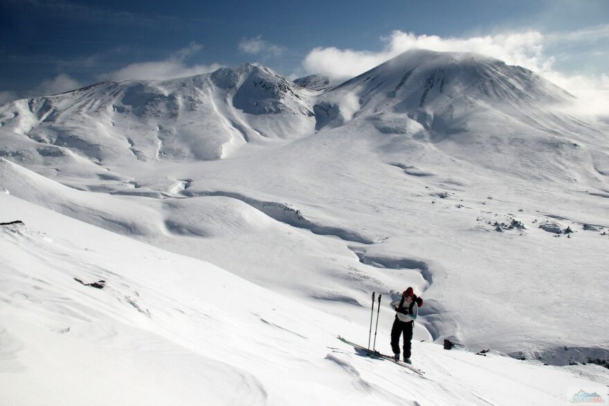 U horní stanice lanovky se otevírá krásný výhled na rozpadnutý kráter vyhaslé sopky Asahidake (2291 m) s čoudícími fumarolami v dolní části, na níž odtud míří 99 procent návštěvníků této oblasti. Tomuto vrcholu se tentokrát vyhneme velkým obloukem, neboť v jeho okolí je řada dalších dvoutisícovek nabízejících různě obtížně výstupy a sjezdy.
