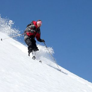 Sjezd v březnovém sněhu vysoko nad hranicí lesa