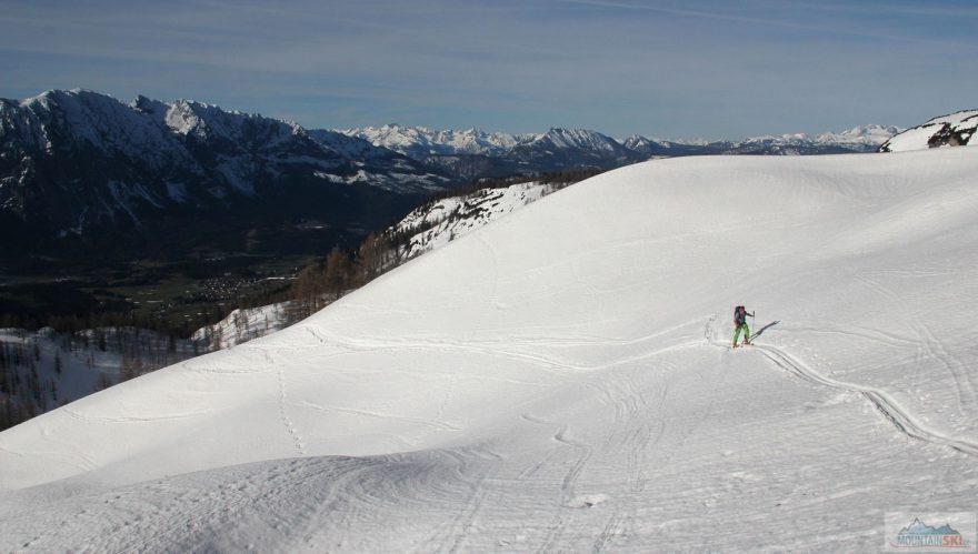 Od chatek se napojujeme na letní turistickou trasu 272 vedoucí na Tauplitzalm. Nasazujeme tulení pásy a stoupáme k jihu buď různě kopírujíce značenou turistickou trasu. Čeká nás přibližně 450 výškových metrů stoupání, kdy v horní části ze západu obcházíme jezera Märchensee a Grossee. Podél sjezdovek se dostáváme k závěrečnému krátkému sjezdu na parkoviště.