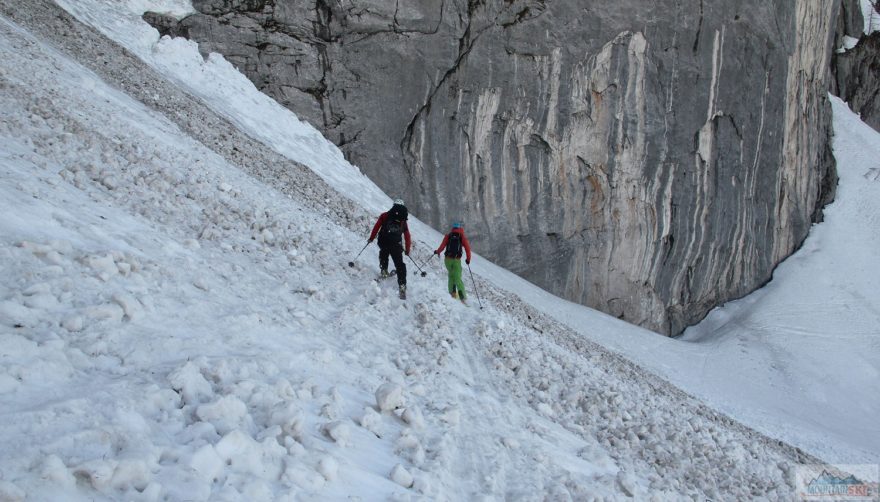 Sjezd z Scheiblingtragl (2151 m) pod skalní stěnou
