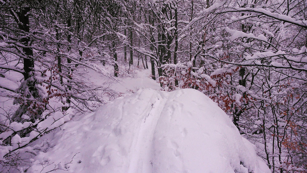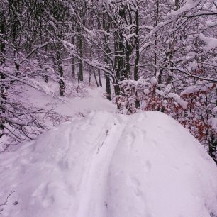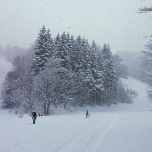 Díky této „čekací“ taktice byla v polovině prosince 2017 na Staré pouze výstupové stopa. Přitom neustále padal sníh a na svahu ho bylo dost i bez aktuálního sněžení. Sjezd neporušeným svahem neměl chybu, a občasné větší propadnutí lyže do borůvčí se dalo snadno vykompenzovat. Jen to chtělo trochu rychlejší sníh.