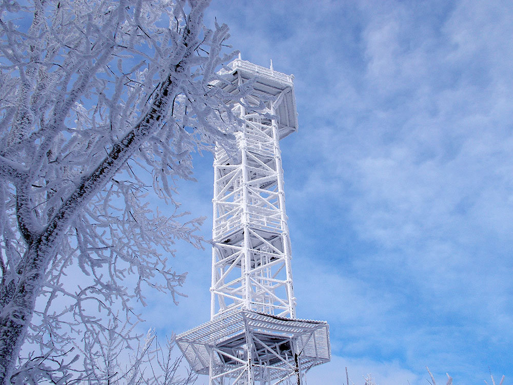 My vyrážame z Květnej (350 m) a smerujeme cez Ťažký vrch k Jelenci (925 m), bývalej vojenskej veži (vysoká 48 metrov). Vychutnávame neporušené svahy, sme v bezzásahovom území. Jelenec je najvyššie položená „rozhľadňa“ v Bielych Karpatoch, bohužiaľ výstup na ňu je na vlastné riziko, resp, je tam vstup zakázaný-ceduľka na zvalenom plote. V lyžiarkach je výstup o to zaujímavejší. Nie-sú tu vyriešené vlastnické vzťahy – pozemok ČR, stavby (vrátane rozhľadne) SR, takže sa tu o to nikdo nestará a iba to chátrá, čo je veľká škoda.