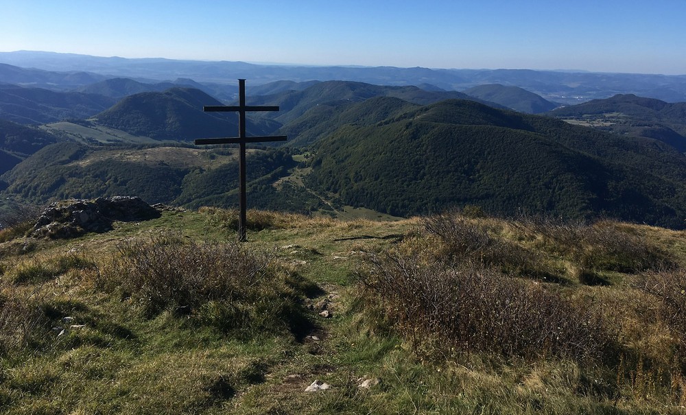 Výhledy od vrcholového kříže Strážova, když zrovna není mlha