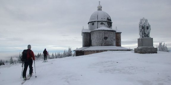 Jedním z nejnavštěvovanějších míst v Beskydech je vyhlídkový vrchol Radhošť, k němuž se přes léto valí davy turistů po „dálnici“ od Pusteven. Za krásných zimních víkendů může být návštěvnost také vysoká. Nejlepší pro skialpový výlet na Radhošť je některý z pracovních dnů – buď před začátkem pracovní doby nebo až navečer na západ slunce.