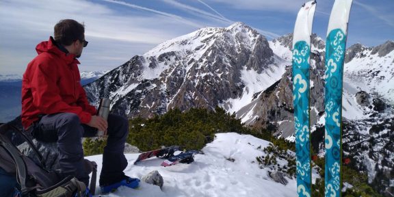 Sundáváme tulení pásy a sjíždíme k další chatě – Dom pri izviru Završnice (1411 m). Od chaty stoupáme na tuleních pásech do sedla Šija (1693 m), přičemž se nad námi tyčí cíl výletu – vrchol Srednji vrh (1797 m). Po dosažení sedla je před námi strmý výstup zpočátku lesním porostem, který se výše mění v kosodřevinu. Podle aktuálního množství sněhu se může jednat o zábavné proplétání s případnou nutností poponést lyže kousek pěšky. Z vrcholu je parádní kruhový výhled na okolní vyšší i nižší vrchol